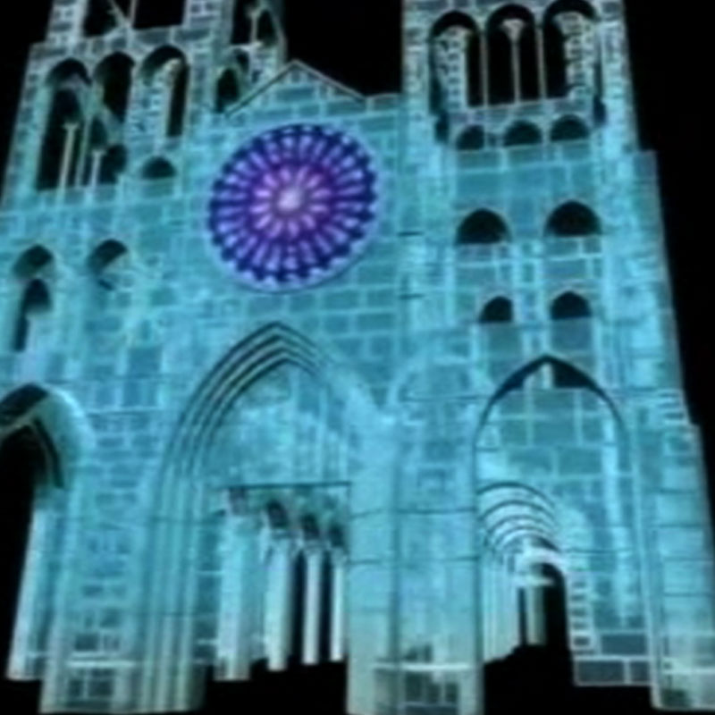 Recreación virtual de una catedral gótica, diferentes fases de la construcción.
