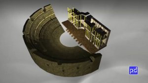 Una animación muy sencilla de un edificio virtual basado en el Teatro Romano de Mérida